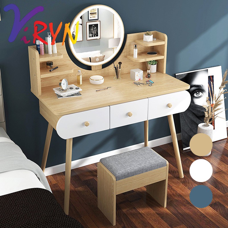 Crafted with solid smoothed wood, our vanity set features a simple classic design complete with strong base legs and smoothed rounded edges for a. My version of the vanity made from ikea hacks. 1 micke desk, 2 alex drawer sets, 1 storjorm mirror. 31.5 h x 46 w x 18 d (vanity desk) chair not included. Micke desk $49.99 stave mirror $29.99 musik lights $15.99 ea marius $4.99 total $116.95 w/o taxes.